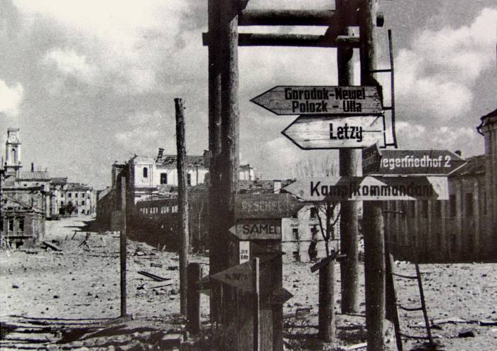 Немецкие указатели на площади Свободы. Слева вдали виднеется полуразрушенная ратуша. Ближайшие местаКомментарии:Комментариев нет! Станьте первым!Оставьте свой комментарий!Назад, к списку | |||||||||||||||||||||